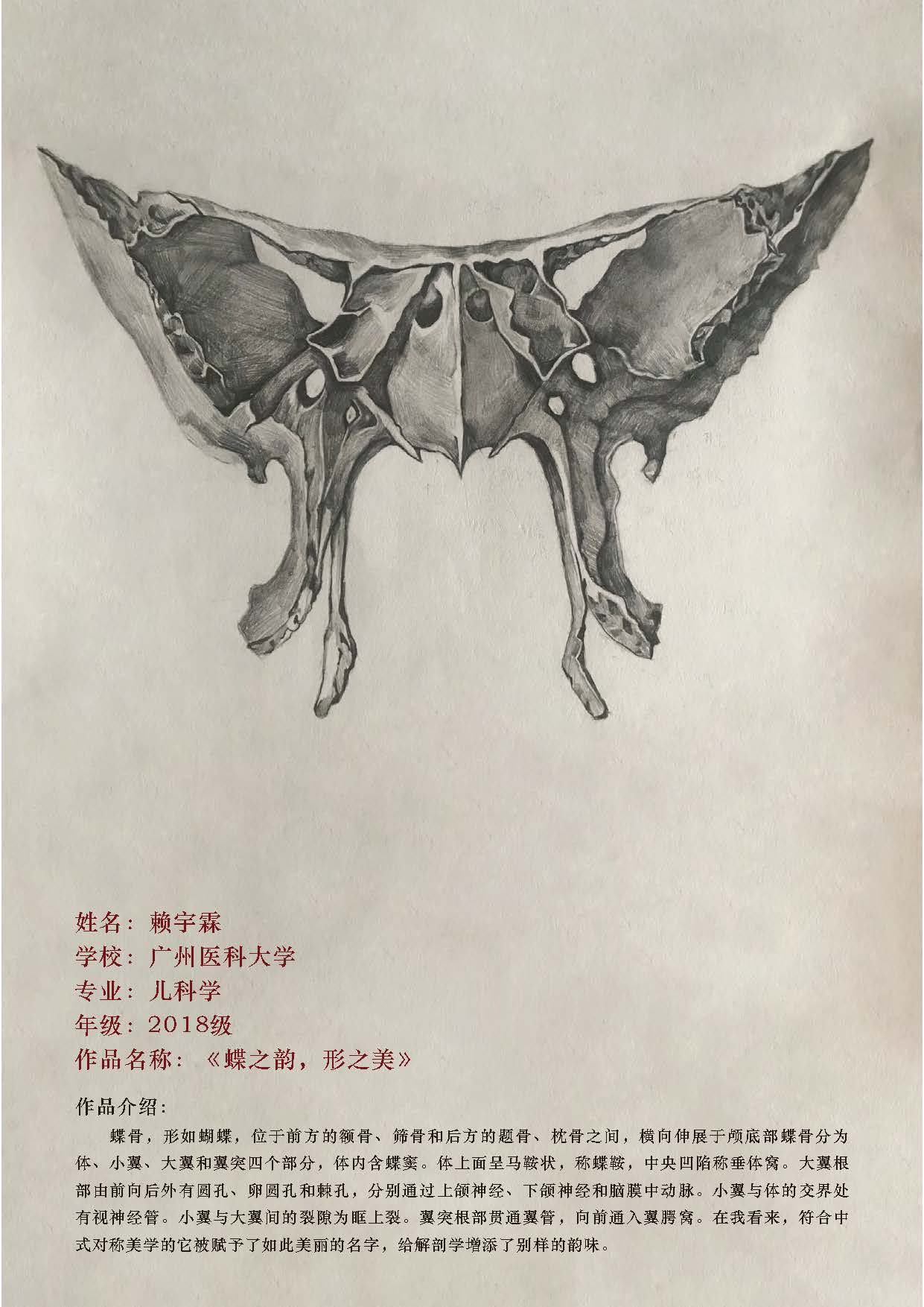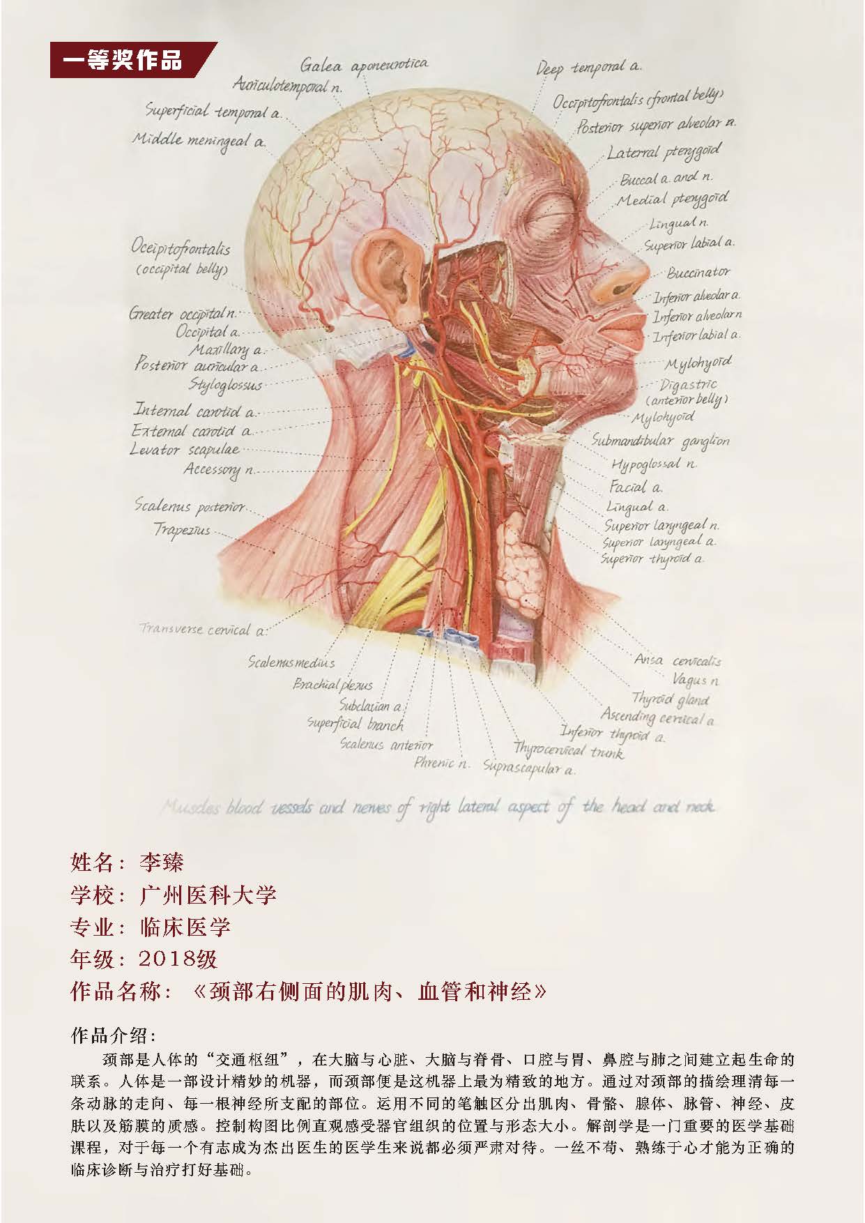 主办,人体解剖学教研室、第一临床学院学生会承办的“广州医科大学首届解剖学绘图大赛”举行。此次大赛共收到来自校本部各学院、各附属医院的学生作品共计149幅。根据对参赛作品科学性、艺术性、实用性和绘画技巧等方面的综合评审,共有20幅作品分别获得一、二、三等奖及优秀奖。