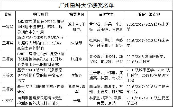 比赛分11个分会场陆续进行,内容涉及生物学与医学等多个学科领域,分为实验设计组和创新研究组两大类。大赛根据相关学科设置了5个分组,分别为机能组、分子医学组、综合与交叉学科组、病原组、形态组。经过两天的激烈角逐,实验设计组评选出一等奖29项,二等奖58项,三等奖88项,优秀奖58项。创新研究组评选出一等奖21项,二等奖44项,三等奖65项,优秀奖44项。我校黄学涵、张思远、黄俊鑫、王子彦、李泽庆等6组本科生凭借优秀的项目研究和出色的汇报答辩,荣获大赛一等奖1项、三等奖4项、优秀奖1项(获奖名单见下表),并获得优秀组织奖,这是我校学生继第五届竞赛获得二/三等奖3项之后又一次新的突破。