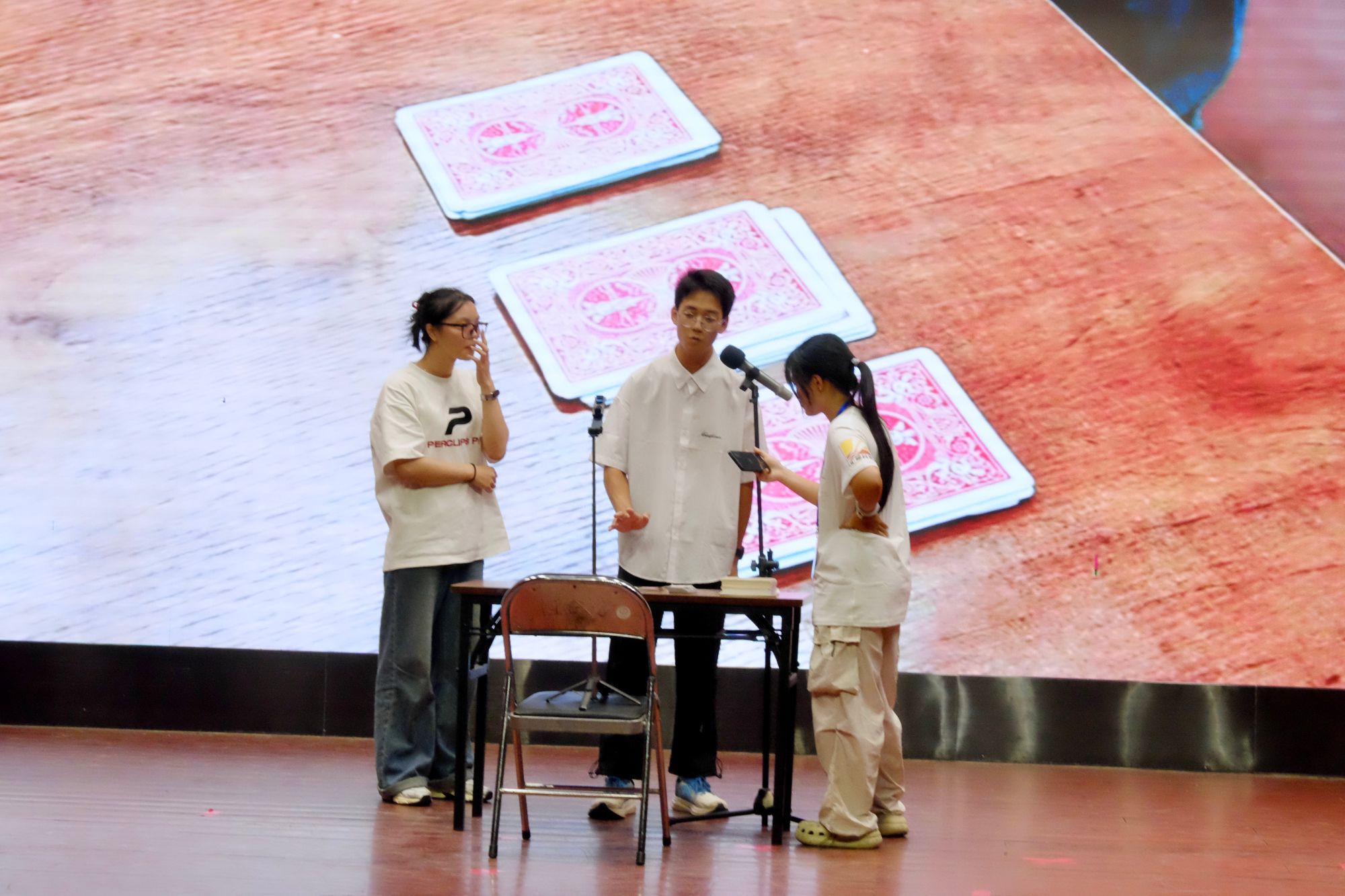 本次迎新晚会节目丰富多样、精彩纷呈,涵盖歌唱、街舞、话剧、魔术、乐器演奏等多种表演形式,师生们的精彩合作为现场观众带来了一场高潮迭起的视听盛宴。晚会还设置了“看图猜台词”“夹气球”“数字抱团”等三轮游戏环节和两轮抽奖环节,同学们热情参与,现场掌声、欢呼声此起彼伏,充满了欢乐与惊喜。