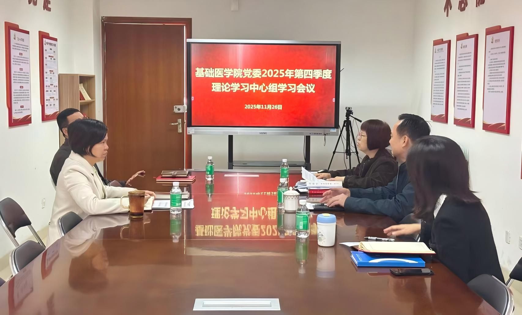 11月26日,澳门在线赌场 党委理论学习中心组2025年第5次集体学习会议在番禺校区博学楼A1栋609会议室召开。会议以专题学习党的二十届四中全会精神为核心,同步学习“十五五”规划建议相关内容。会议由学院党委书记尹梅主持,中心组全体成员参会。