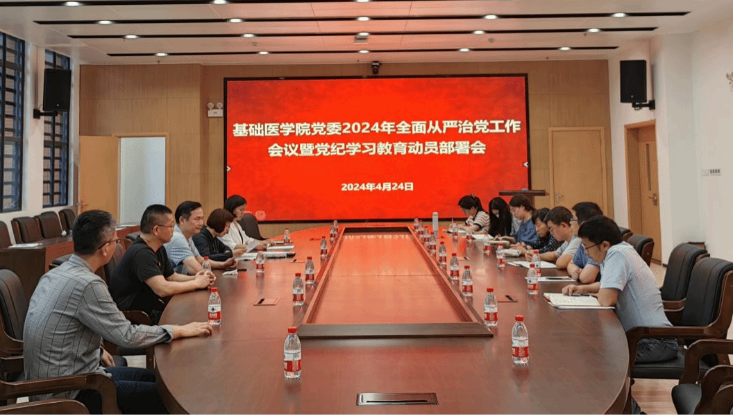 全面从严治党工作的总体思路和重点工作,对学院党纪学习教育进行动员部署。会议指出,这次党纪学习教育,是加强党的纪律建设、推动全面从严治党向纵深发展的重要举措。会议强调,各党支部要履行全面从严治党主体责任,准确把握开展党纪学习教育的目标要求,在学习贯彻《中国共产党纪律处分条例》上下功夫,做到学习教育与日常工作有机融合,推动党员养成纪律自觉,始终做到忠诚干净担当,切实把党纪学习教育成果转化为推动学院各项事业高质量发展的实际成效,为学校“双一流”建设提供坚强的政治保障。