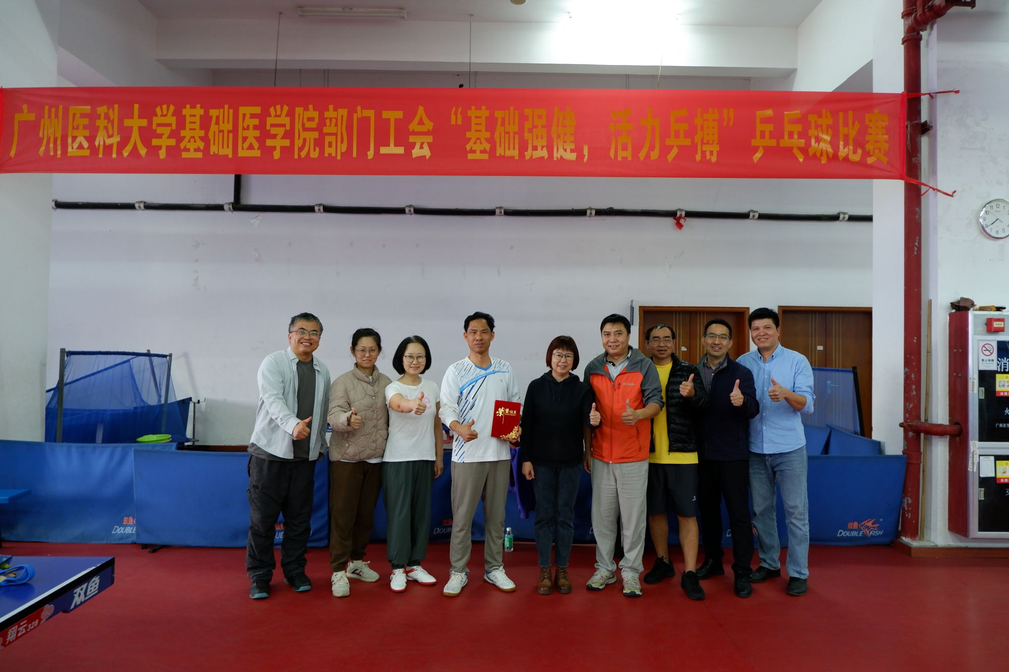 比赛过程紧张刺激,精彩连连。各队队员在赛场上全力拼搏,挥洒汗水,打球技巧花样百出,赢得现场观众阵阵喝彩。历经多轮激烈角逐,解剖学系队勇夺冠军,生理学与病理生理学系队斩获亚军,办公室队与广州霍夫曼免疫研究所队并列季军。