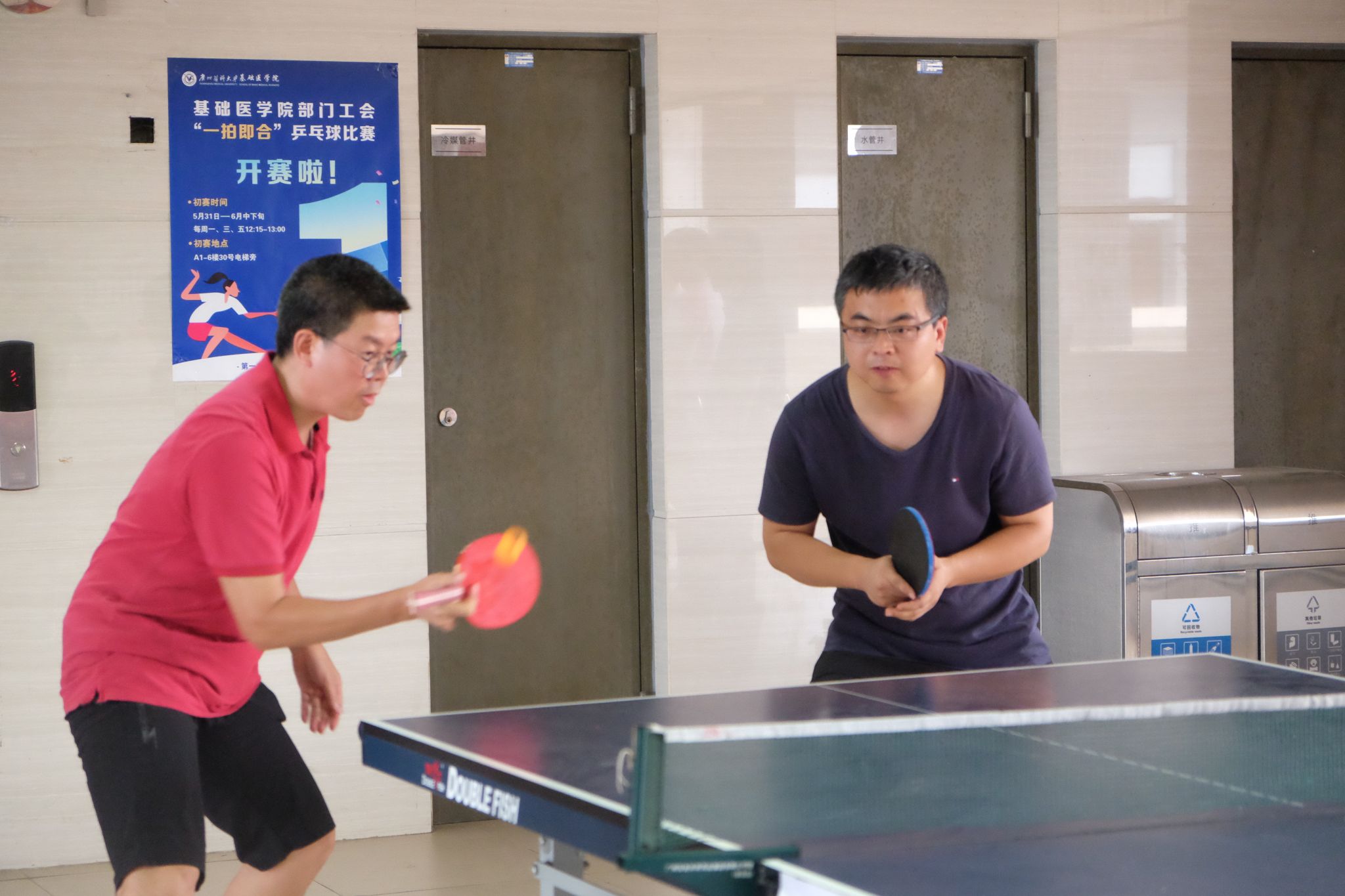 6月初,经精心筹划,我院联合生物医学工程学院“一拍即合”乒乓球比赛拉开帷幕,11个工会小组组建了8支队伍参赛。选手们以球会友,相互切磋技艺,经小组循环赛、半决赛和决赛共15场赛事的角逐,最终生工学院组和我院机能学组分别取得冠、亚军的战绩。