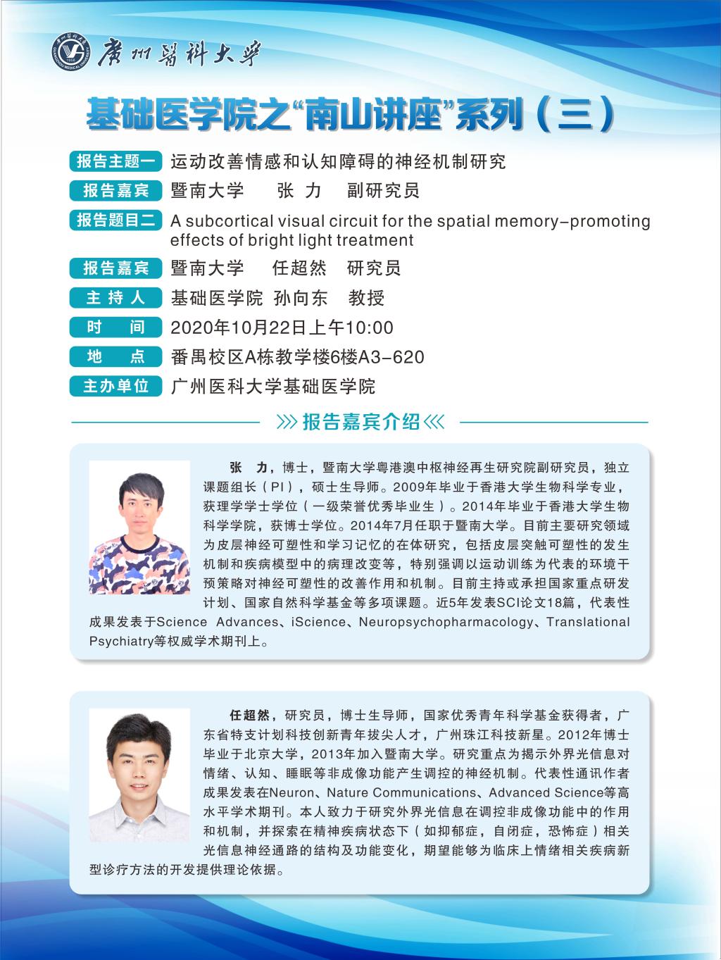 学术讲座--运动改善情感和认知障碍的神经机制研究