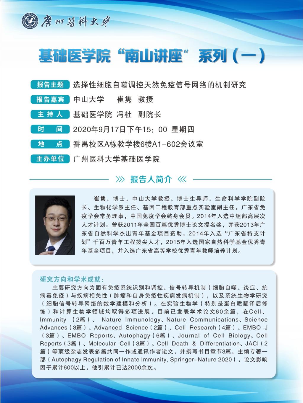 学术讲座--选择性细胞自噬调控天然免疫信号网络的机制研究