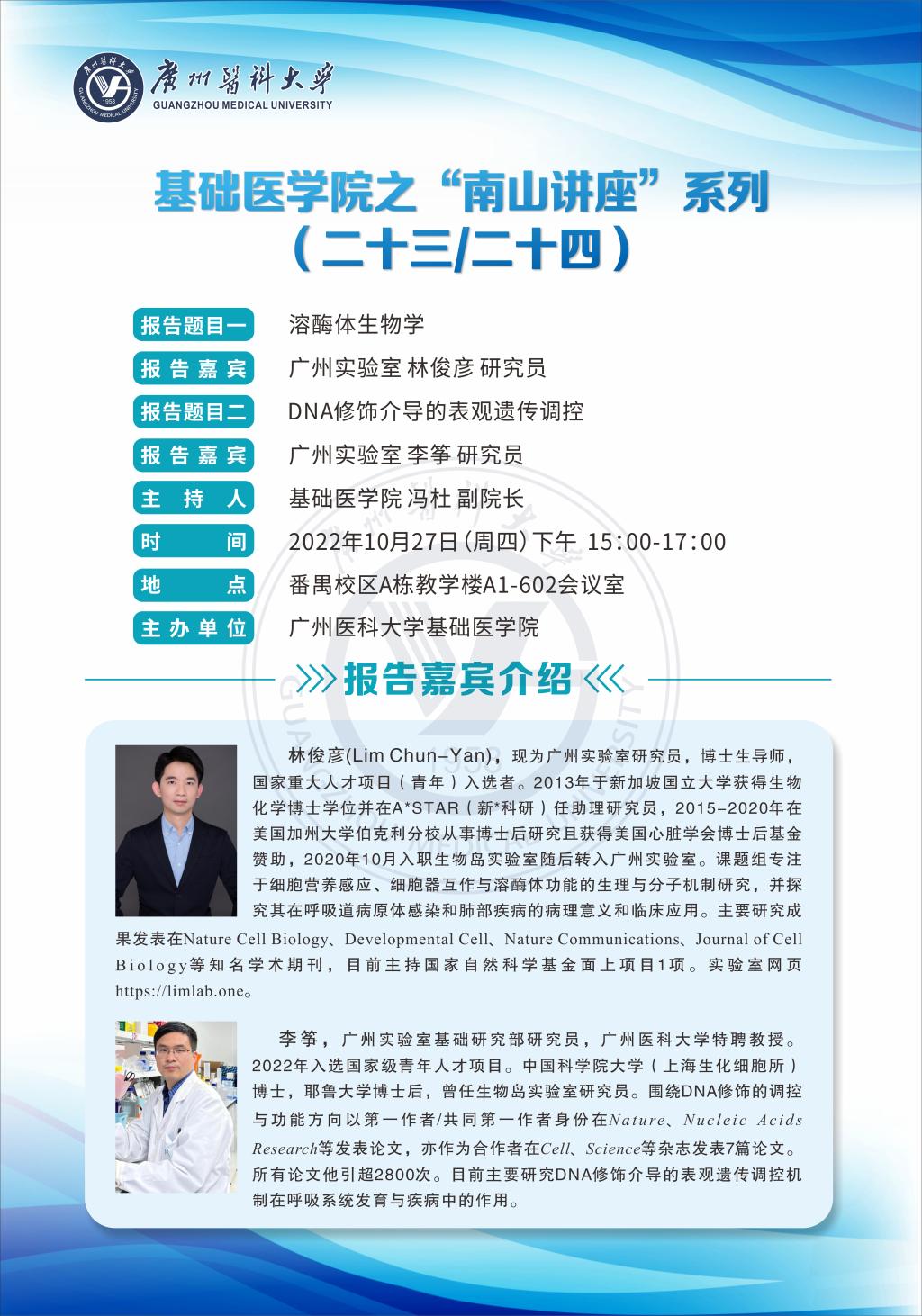 学术讲座--溶酶体生物学&DNA修饰介导的表观遗传调控