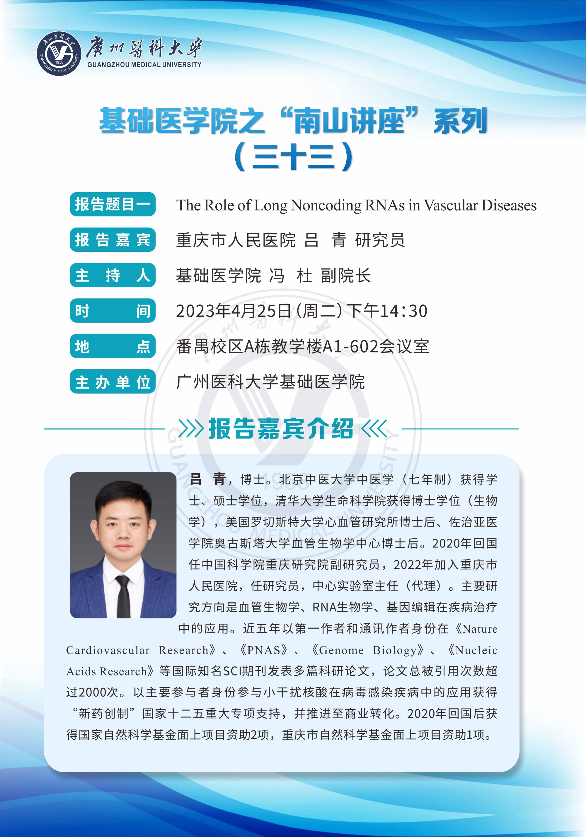 学术讲座--The Role of Long Noncoding RNAs in Vascular Diseases